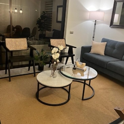 Esta mesa se fabrica a pedido, permitiéndote personalizar las medidas, el color de la estructura y el tipo de cubierta.